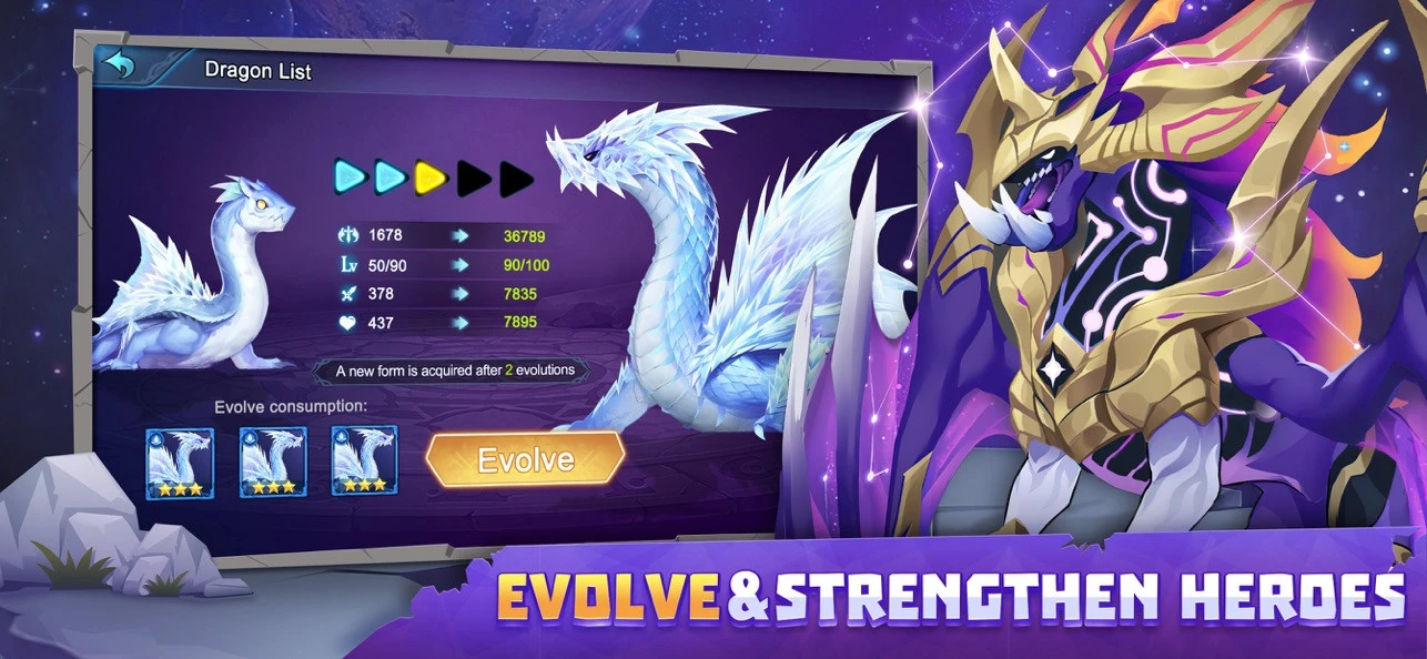 Если вы любите тренировать драконов, то тогда эта игра вам зайдёт. Графика такая же, как и в Guardians of Cloudia. В самом начале нас проводят по всем меню и интерфейсам. Драконы разделяются на уровни редкости. Музыка спокойная, словно играешь в Зельду. Есть AFK-элементы, как в той же AFK Arena. Лично мы никак не влияем на поле боя, только вставляем самоцветы в слоты, а также выполняем квесты. Самоцветы можно объединять; так увеличивается их ранг. Разработчики обещают более 300 уникальных персонажей. Всё делается ради того, чтобы «сразить легендарного босса».