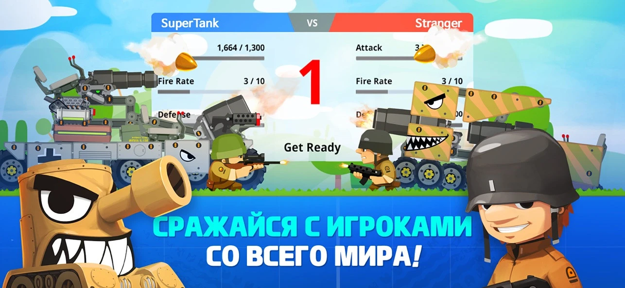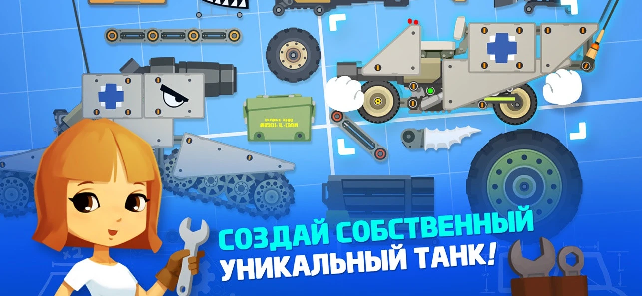 Этот проект больше напоминает CATS от ZeptoLab: мы строим танк и отправляемся на поиски оппонента. Битвы происходят в автоматическом режиме: один из танков побеждает, а потом ещё обстреливает вражескую пехоту. Единственное, что мы можем делать: отъезжать назад для тактического преимущества. Если честно, то игра выглядит так, словно её сделали на коленке и в Paint: всё мультяшное, а у моделек практически не чувствует 3D-глубина.