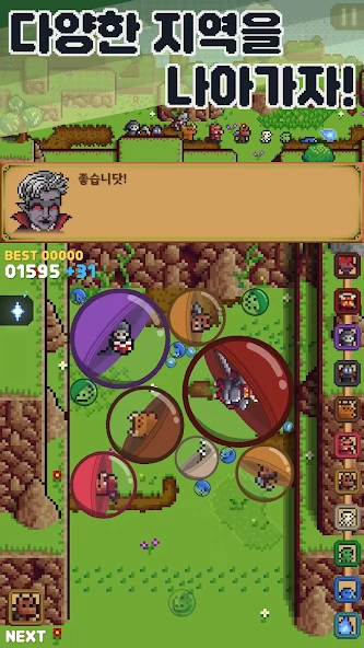 Основа геймплея в этом проекте — объединение одинаковых юнитов в пузырях разных размеров, чтобы получить из них что-то новое. Для этого игрок выстреливает новыми шариками в нужном направлении в надежде попасть по одинаковому персонажу и соединить их. По сути идея игрового процесса вдохновлена проектом Suika Game, который выпустили 28 марта 2024 года на смартфоны.