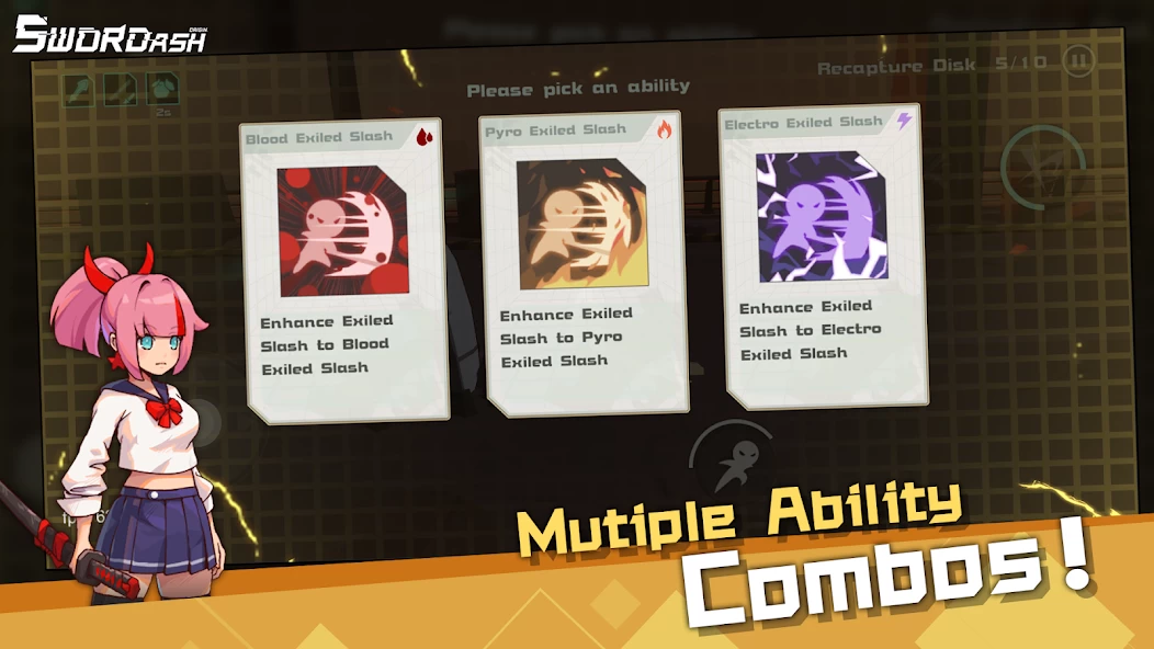 Swordash — мобильная игра, по мере прокачки игроки Swordash будут получать 1 из 3 случайных способностей. Это может быть как увеличение урона, активация щита или вампиризм. Сюжет раскрывается через текстовые диалоги, жалко что на английском и не озвученные.