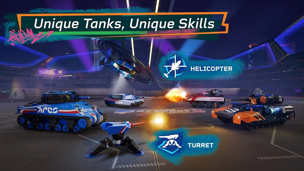 В Tank-a-Boom игроки сражаются не в городах и не лесах образца Второй мировой войны, а на футуристичных аренах. Местные танки также далеки от своих реальных прототипов, особенно что касается их раскраски — она яркая и современная. Управление полностью ручное, а графика средняя. По мере побед вы будете подниматься в рейтинге Международной танковой лиги, зарабатывать награды и открывать новые танки.