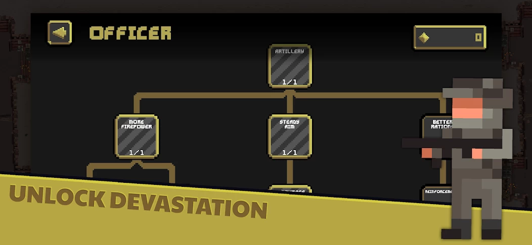 To The Trenches это мобильная игра с пиксельной графикой, действия которой разворачиваются на полях сражений Первой мировой войны. Играть можно за 4 страны, среди которых есть Германия и Пруссия. Несмотря на выбор сторон, задачи остаются одинаковыми — прокачать ветку исследований за монету, открывая новые типы войск и вооружений.