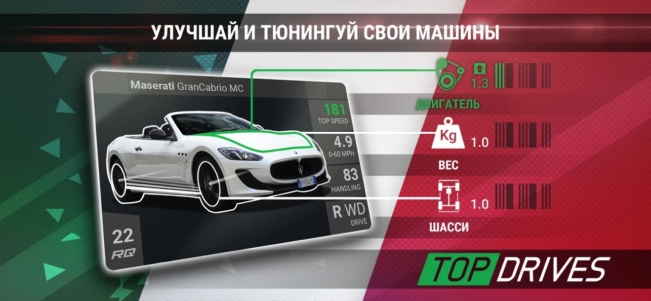 На этой странице собрана вся доступная нам информация о Top Drives. Выход игры Android, IOS состоялся 28 августа 2018. Игру можно отнести к таким жанрам как: гонки, карточные игры, современный сеттинг, игры с мультиплеером, одиночные игры, gacha. Также на этой странице вы найдете описание Top Drives, даты выхода на все платформы, её трейлеры, отзывы пользователей, последние новости, статьи и обзоры, оценки посетителей и редакции.