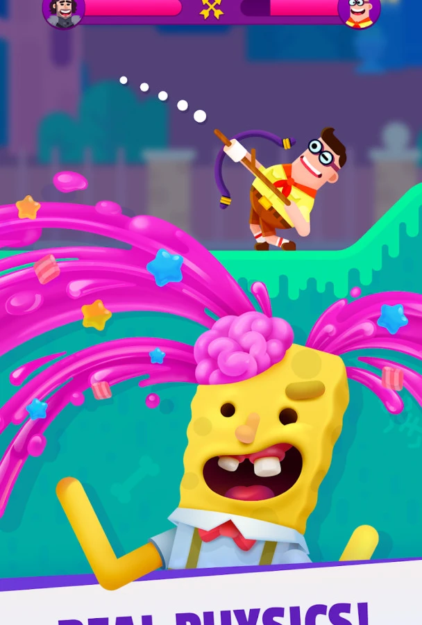 Ultimate Bowmasters — мобильная игра. Проект хорош тем, что в нём используются многие популярные персонажи из разных мультиков и игр, например, Губка Боб и Саб-Зиро. У каждого из них разные копья и другие предметы, которыми они кидаются во врага. При попадании в голову или мщении своему обидчику игроки получают золото, которое потом тратится на новые попытки и других героев.