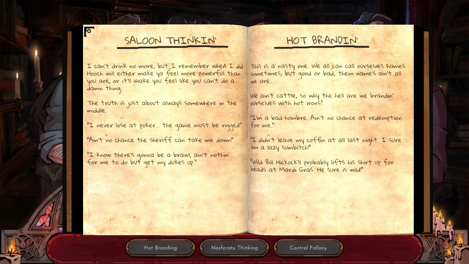 В симуляторе терапии мы возьмём на себя роль Сэма — бывшего ковбоя, а ныне вампира, который ищет смысл своей бессмертной жизни. К счастью, на нашем пути повстречался 3,000-летний вампир Андромахос, который поможет найти ответы на вопросы. Оказывается, не мы одни страдаем от психологических проблем — на свете есть множество кровососов со своими бедами: от агорафобии до нарциссизма.