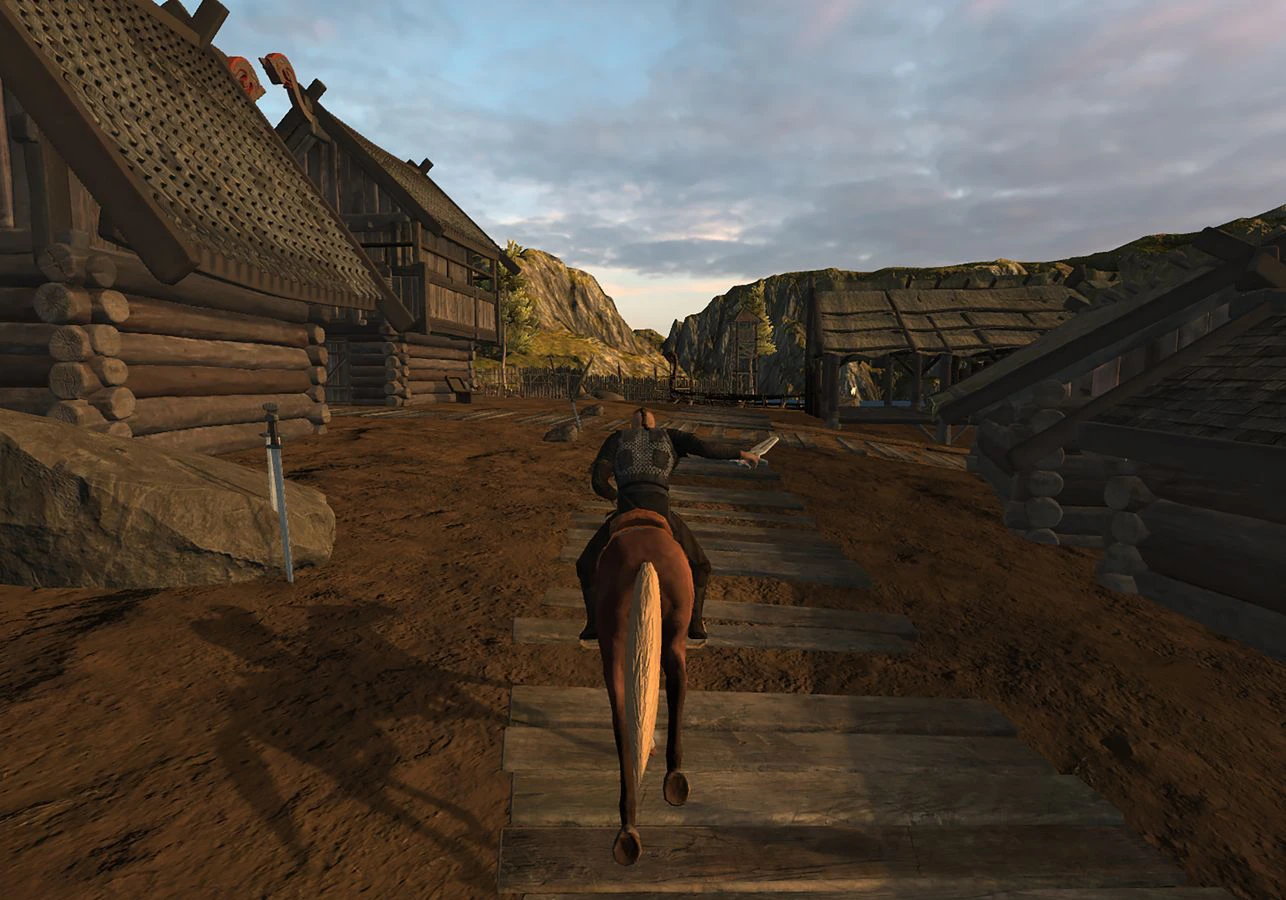 Это мобильная тема со скандинавской тематикой. Мы управляем викингом. Всё бы ничего, но графика здесь «так себе». Мы начинаем в маленькой деревушке. Там надо добыть меч со щитом, а потом брать квесты и выполнять их. Боёвка простая: мы просто затыкиваем врага. Есть несколько кнопок действия. Наш викинг может переключаться между мечом и стрелами.