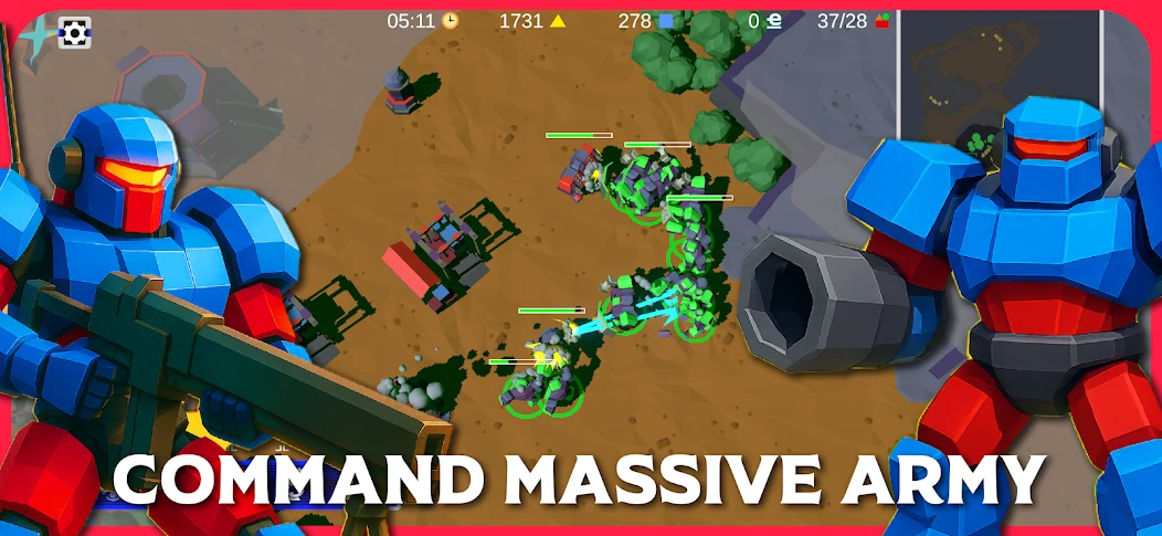 War Ex Machina — стратегия в реальном времени (RTS) с низкополигональной картинкой. В ней можно строить базу, управлять добычей ресурсов, прятаться в тумане войны, проводить контратаки и расширять свою территорию.
