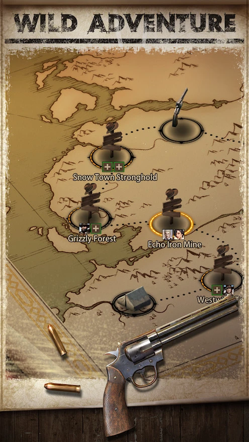 Wild Adventure — мобильный проект, который доступен на iOS и Андроид. В нём мы выбираем группу из редких ковбоев и отправляемся зачищать уровни, а точнее — территорию рядом с нашим поселением. Интересно, что в роли врагов выступают зомби и типичные разбойники. Также мы должны выполнять задания и стрелять во вражескую толпу из ракетницы.