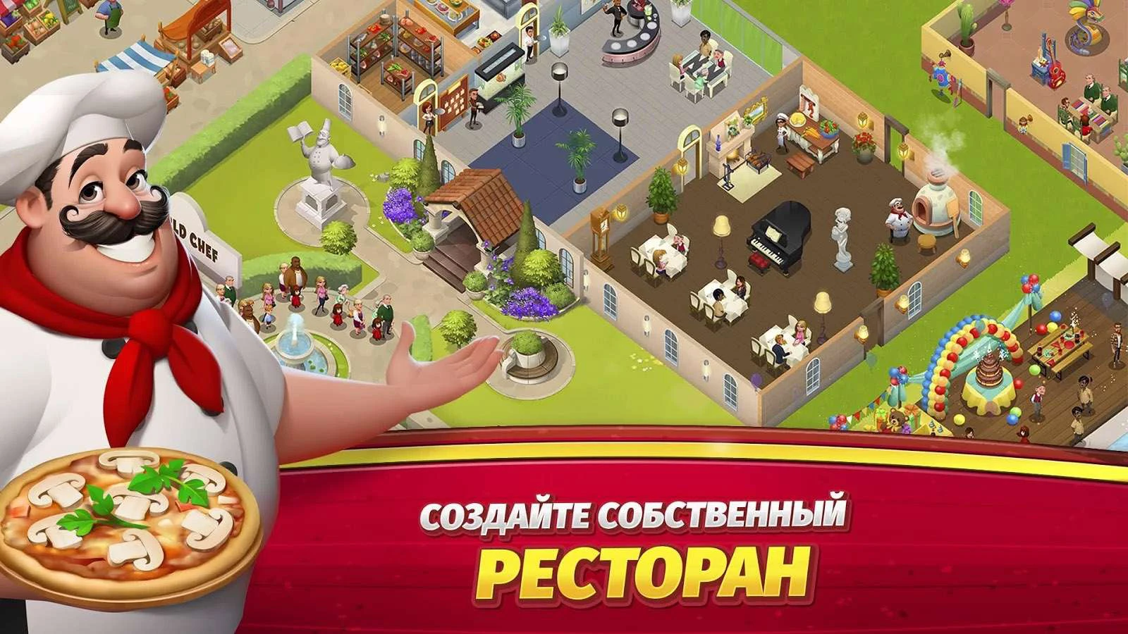 World Chef - это счастливый мир, где кухня никогда не закрывается, на лице официанта всегда сияет широкая улыбка, а еда настолько вкусна, что даже играть вам, возможно, придется с нагрудной салфеткой за воротником. Открывайте ресторан, присваивайте ему подходящее название и декорируйте на свой вкус! А затем начинайте готовить блюда самых разных кухонь мира и обслуживайте клиентов! Скоро ваше заведение станет таким популярным, что придется его расширять!