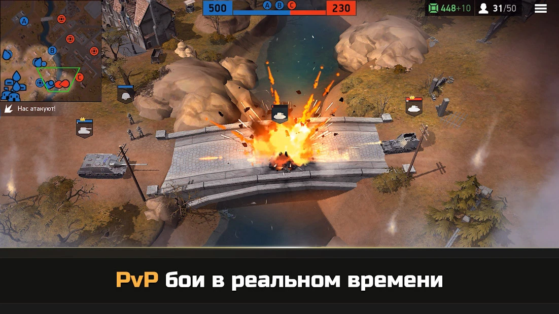 Это стратегия в реальном времени, действия которой происходят во время Второй мировой войны. Наша задача — захватывать стратегические точки на карте. Это позволяет добывать больше ресурсов. В игре есть пехота и танки. Железяки могут спокойно уничтожить пехотный отряд. Постройка зданий на первых порах проходит быстро, но есть опасения, что дальше будет хуже. На старте мы играем за немцев, которые щеголяют на танках Panzer III.