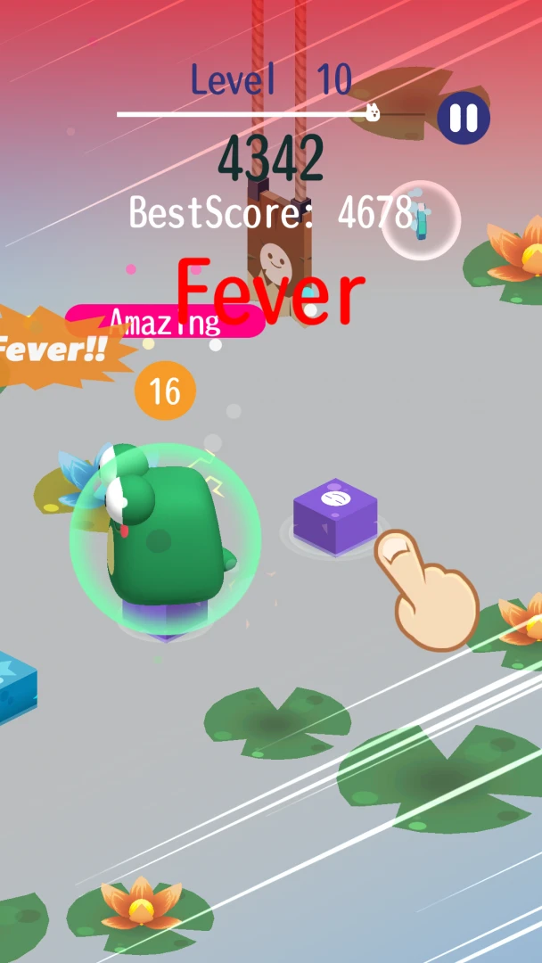 Попутно можно собирать монетки, которые будут увеличивать ваш общий счет. Иногда, среди синих монеток попадаются красные. Красная монетка вводит персонаж в режим Fever, который позволяет уничтожать преграды и закончить уровень быстрее.