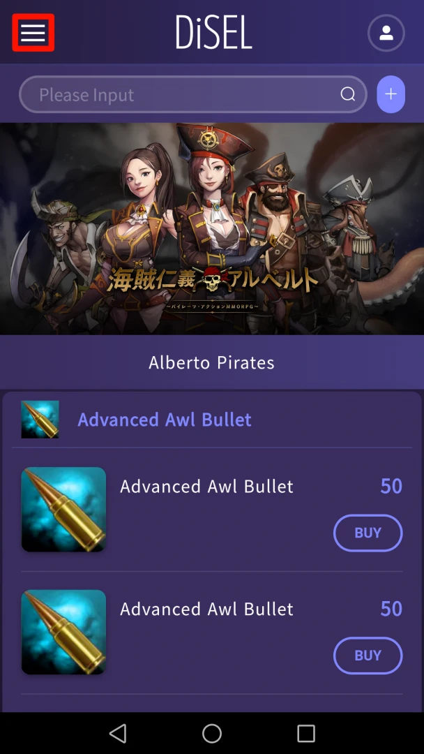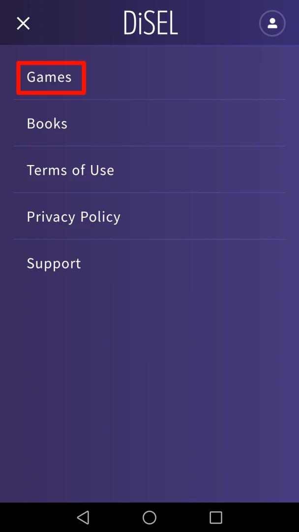 - 4. Вы в разделе игр, нажмите иконку меню в левом верхнем углу экрана.Если у вас уже есть необходимое количество DiSEL points и вы играете в игры из представленных на платформе, в этом разделе можно приобрести игровые предметы.