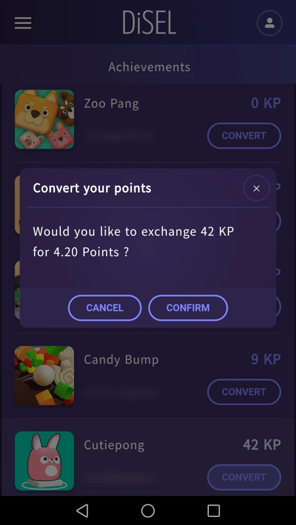 После того, как вы перевели KP на свой DiSEL аккаунт, необходимыми конвертировать KP в DiSEL points. DiSEL points - валюта используемая на платформе DiSEL.