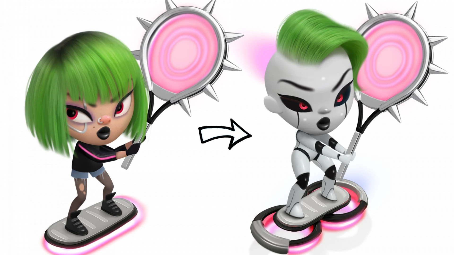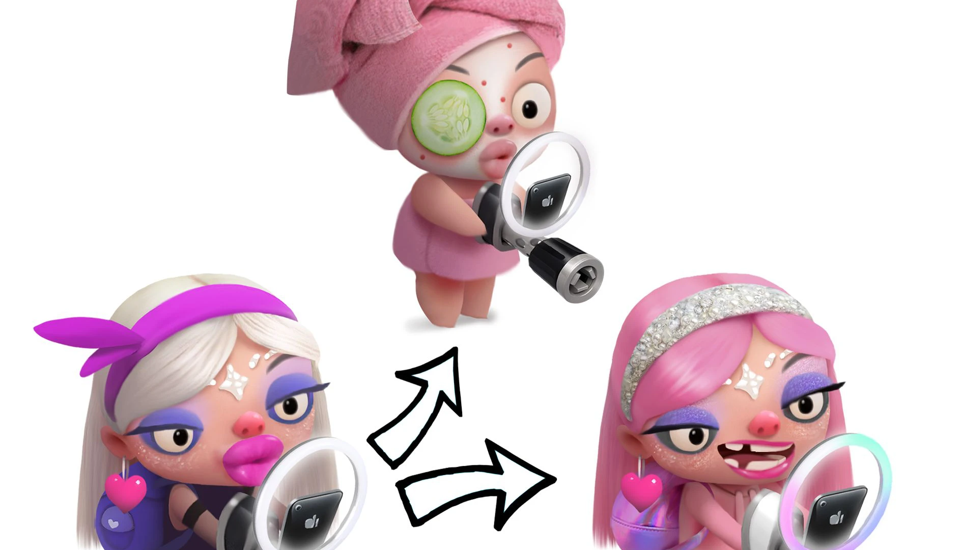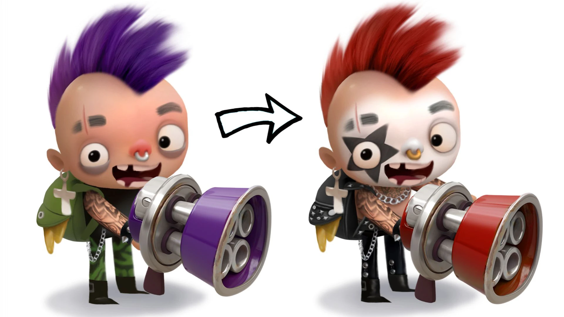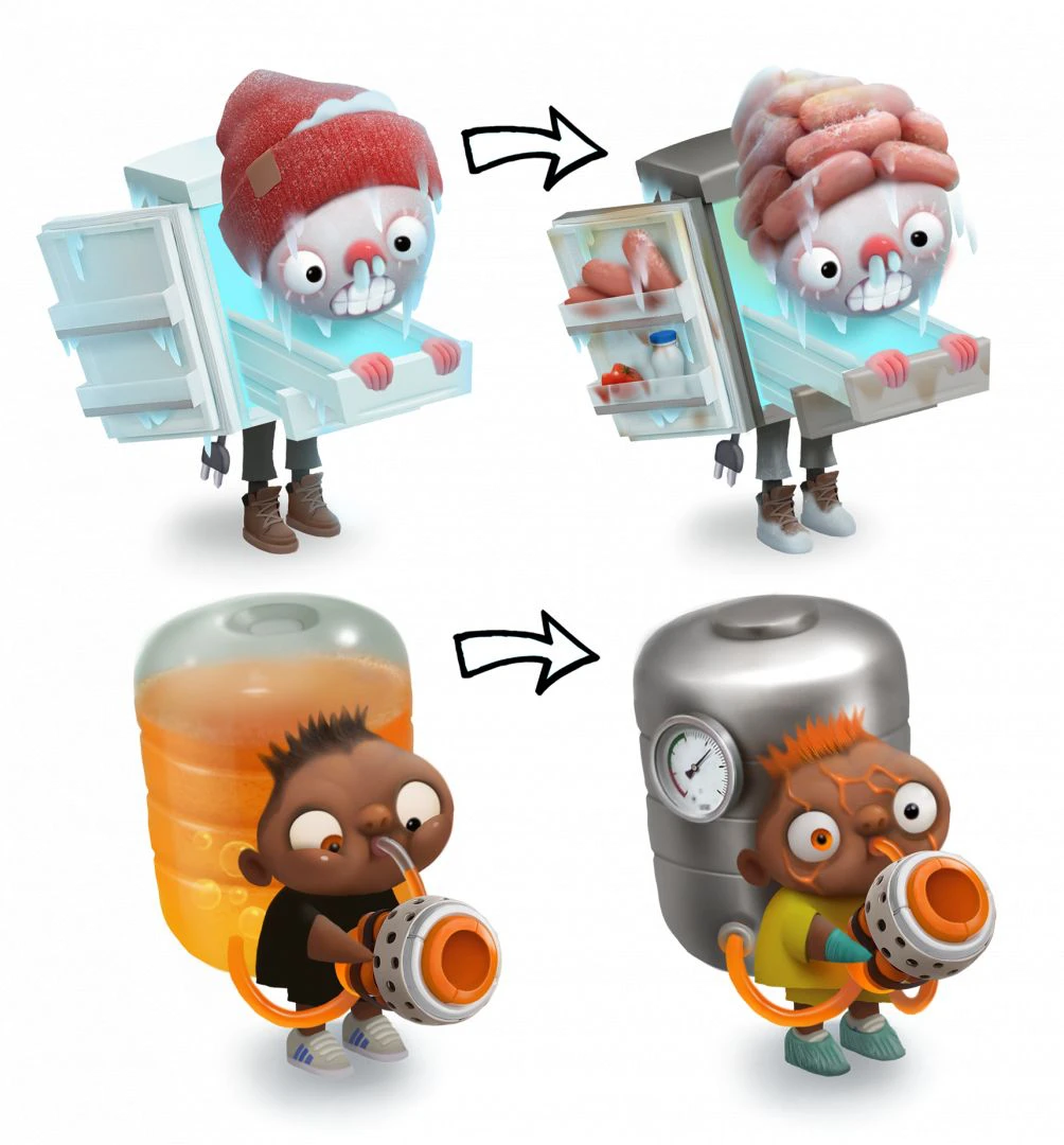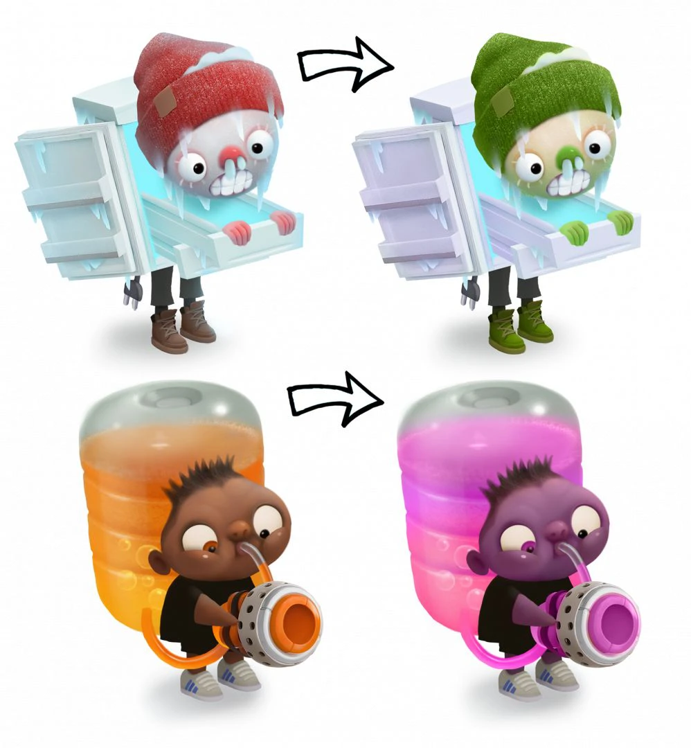 Чтобы этого избежать, подходим к рескину творчески, но в рамках разумного. В нашем случае стремимся сохранить базовый силуэт персонажа — это позволит сэкономить ресурсы аниматоров и разработчиков. А вот уже внутри силуэта — полный отрыв и свобода творчества.
