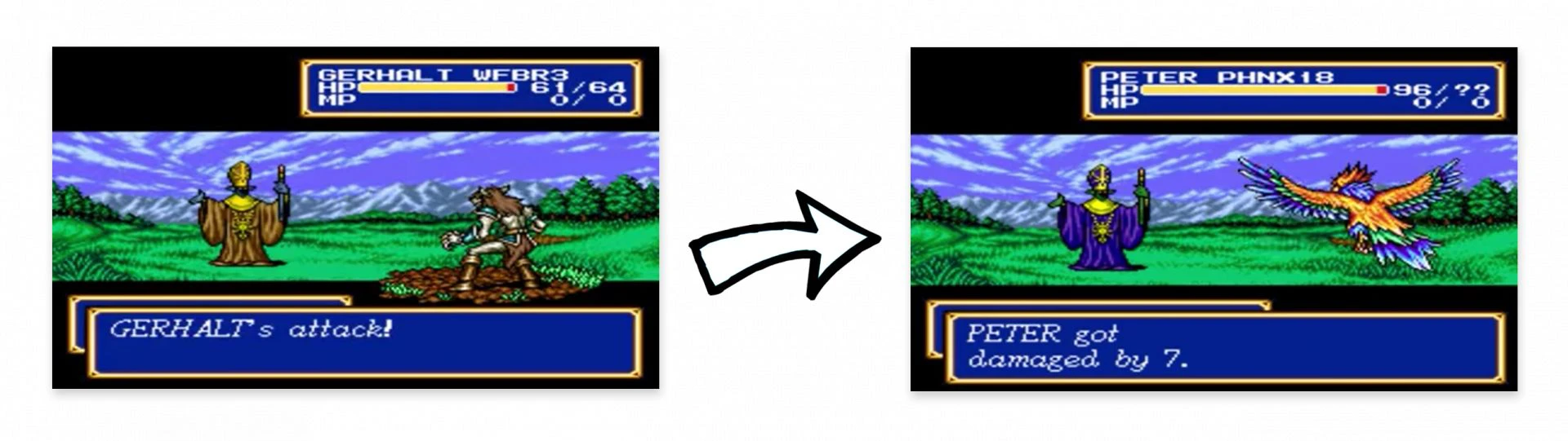 Или другая классика — Shining Force II 1993 года с Sega Mega Drive (Genesis). Здесь перекрасили врагов.