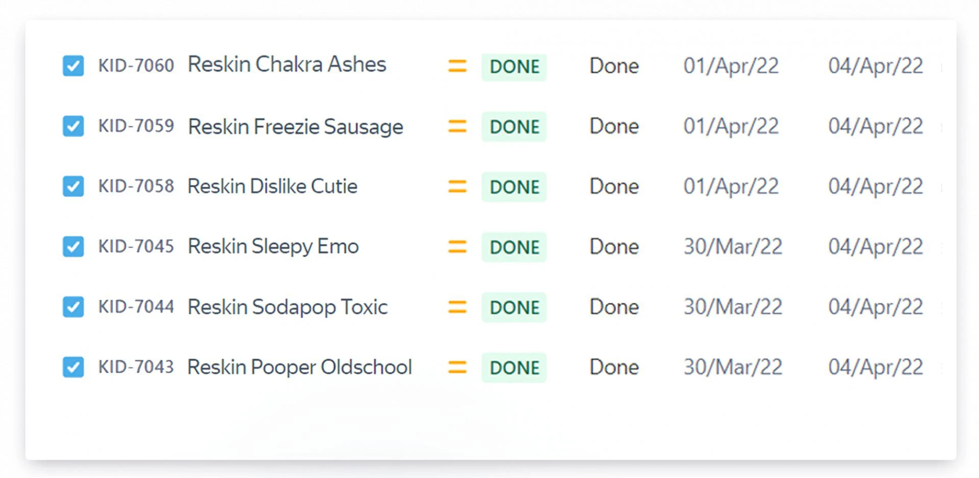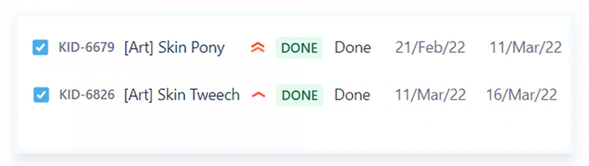 Сверимся с нашим трекером задач, чтобы увидеть, сколько времени занимает работа по созданию новых скинов. В учёт берём только арт-составляющую, то есть отрисовку образа.