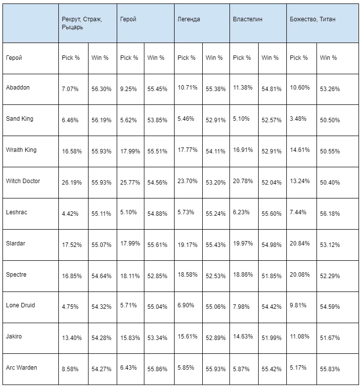 Топ керри героев по винрейту