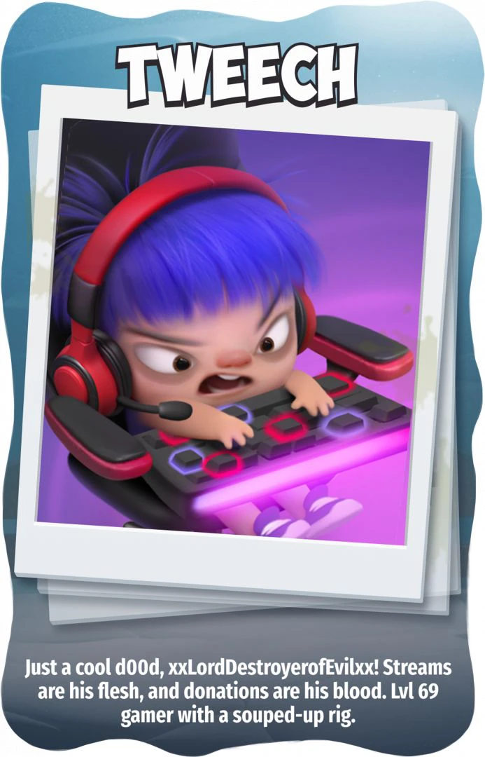 В конечном счёте было решено сдвинуть акцент в сторону геймерско-стримерской сущности героя. Так он стал Твичом (в английском – Tweech, в честь одной небезызвестной площадки для стримеров). Но и “акимбо” оставило свой след, обретя место в описании базовой атаки.