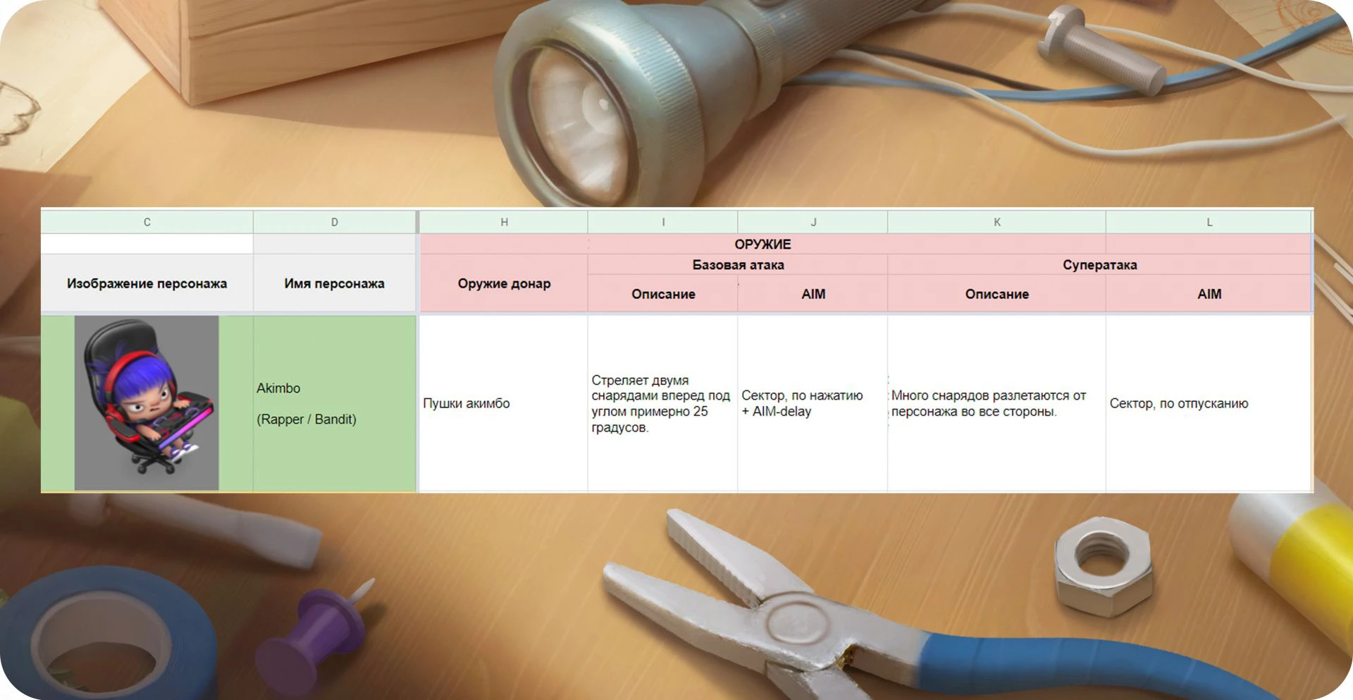 Геймдизайнеры щедро делятся с QA всей документацией, описанием всех умений персонажей, а также “дефами” — таблицей с кучей цифр, где выставлены все параметры перса, от здоровья до скорости передвижения.