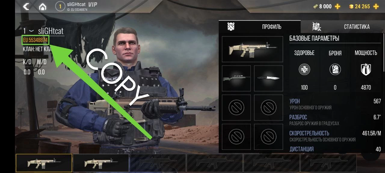 Для покупок в Modern Strike Online достаточно предоставить свой игровой ID. Чтобы его найти: