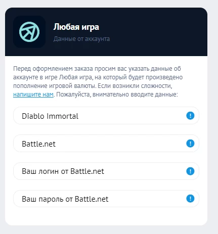 Данная услуга предназначена для покупки любого набора или временного комплекта в нужной вам игре, которого нет или пока нет в нашем маркете.