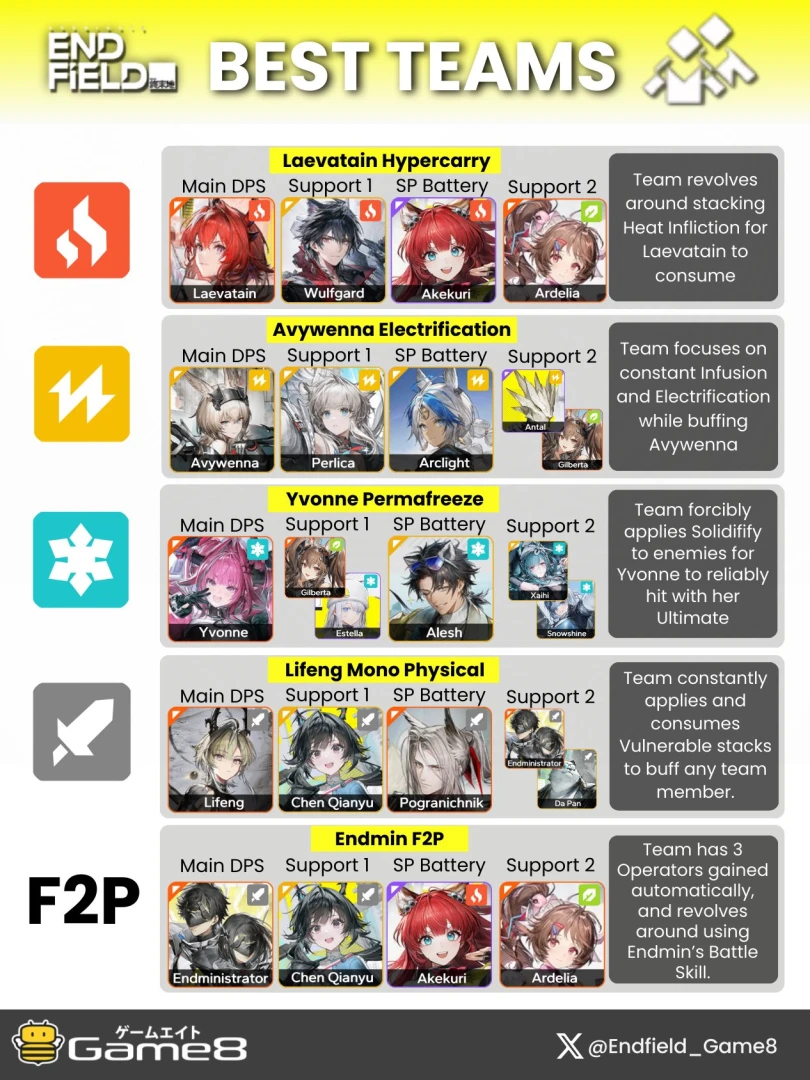 Игровой портал Game8 собрал свой топ отрядов для F2P-игроков Arknights Endfield и отдельных стихий.
