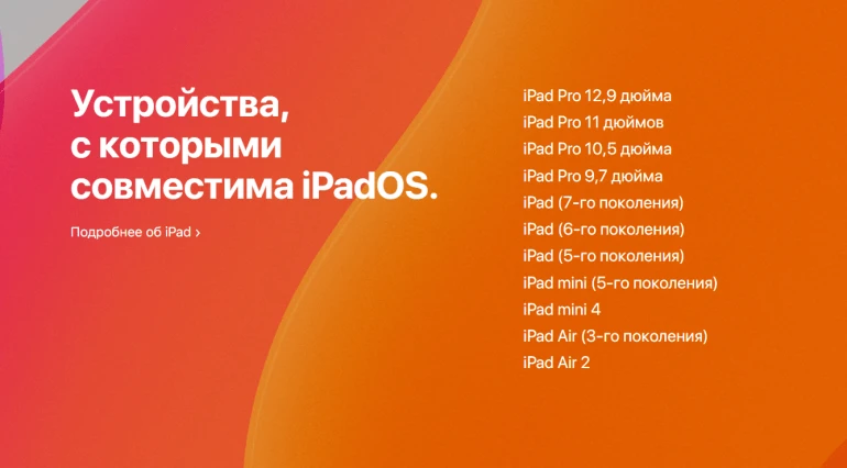 iPadOS — первая версия отдельной операционной системы для планшетов Apple, основанная на iOS 13. На главном экране теперь отображаются виджеты; обновились системные приложения Apple Maps, «Фото» и «Напоминания»; добавлена поддержка контроллеров Xbox One и PS4; появился настольный режим Safari и многое другое.