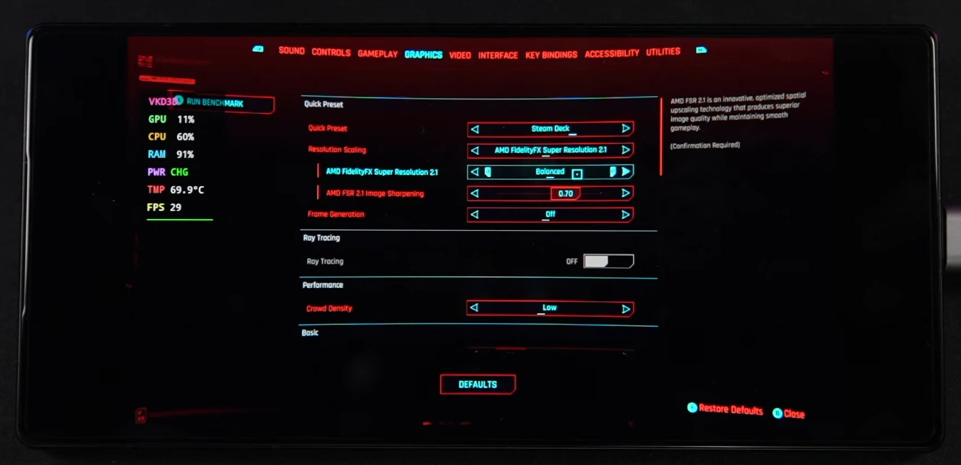 Cyberpunk 2077 почти дотягивает до уровня Steam Deck на RedMagic 11 Pro