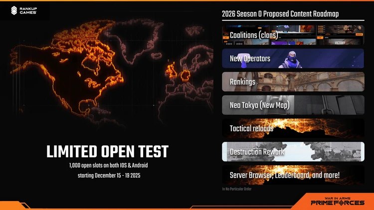 Помимо этого разработчики War in Arms тизерят контент, который будет доступен в нулевом сезоне в 2026 году. В игру добавят кланы, новых оперативников, рейтинговые режимы, новую карту Neo Tokyo, тактическую перезарядку, переработанную систему разрушений, браузер серверов, таблицу лидеров и многое другое.