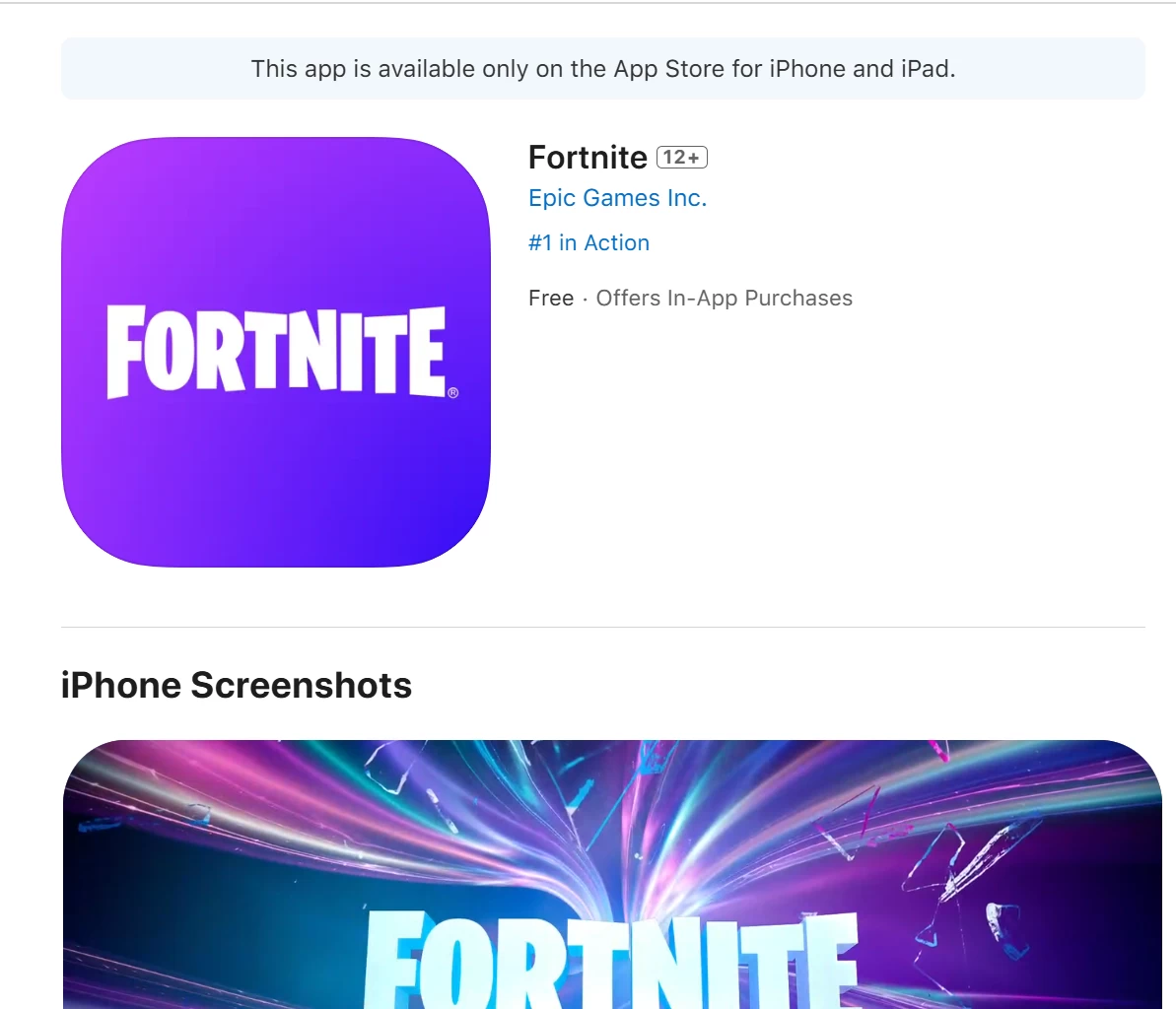 Fortnite стал топ-1 игрой, обогнав Roblox и Delta Force в App Store США. Ещё игра доступна в Европейском союзе.