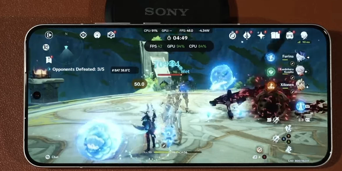 Wuthering Waves на среднем пресете и с локом на 60 FPS показывает «перегруз». В битвах есть просадки до 29 кадров, а потребление игры доходит до 6,08 Вт. Это значит, что батарея быстро разрядится.