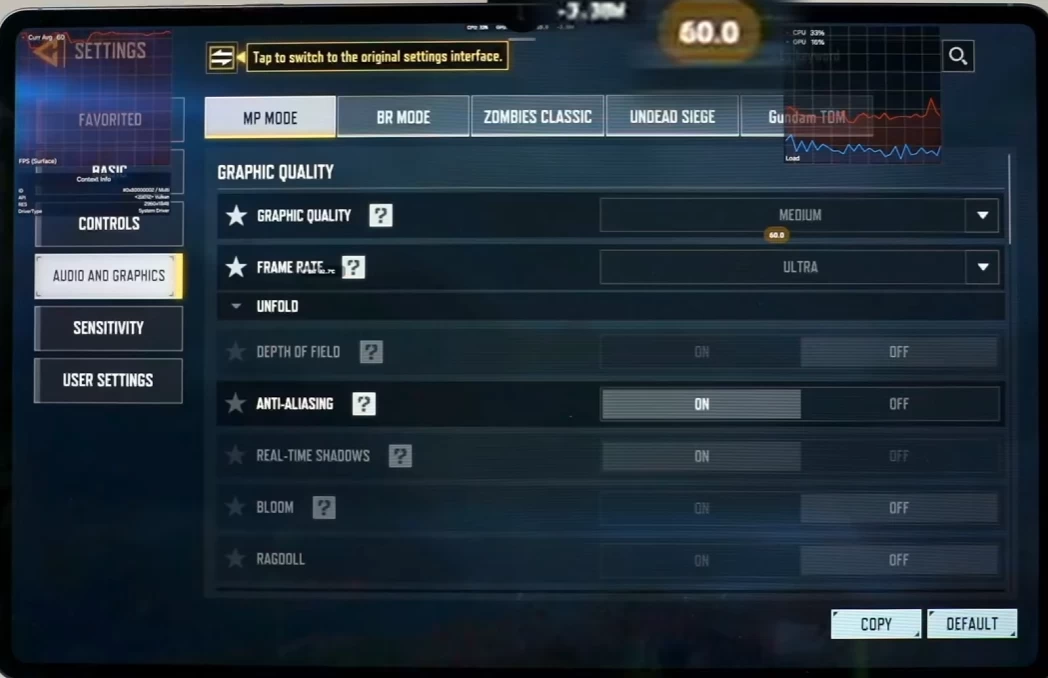 В Call of Duty Mobile на этом планшете нельзя выбрать максимальный пресет — ради лока на 120 кадров придётся пожертвовать графикой и выставить средний пресет. В режиме «королевская битва» получаем стабильные 120 FPS.