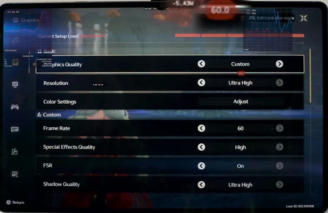 В Zenless Zone Zero также выставляем максимальный пресет. В битвах с большим количеством спецэффектов получаем просадки до 45 и 36 кадров даже при повторном входе на локацию (меньше нагрузки из-за шейдеров).
