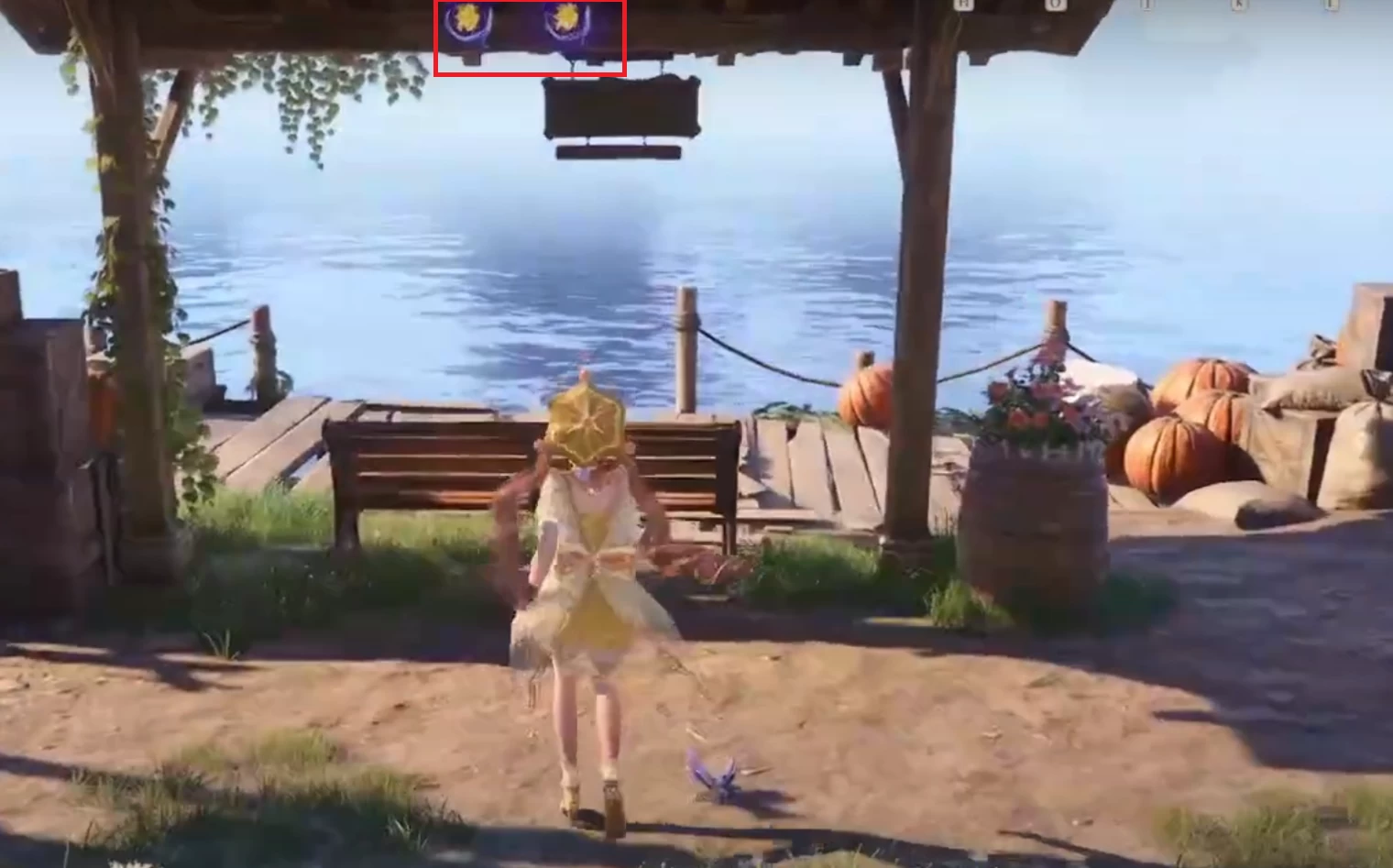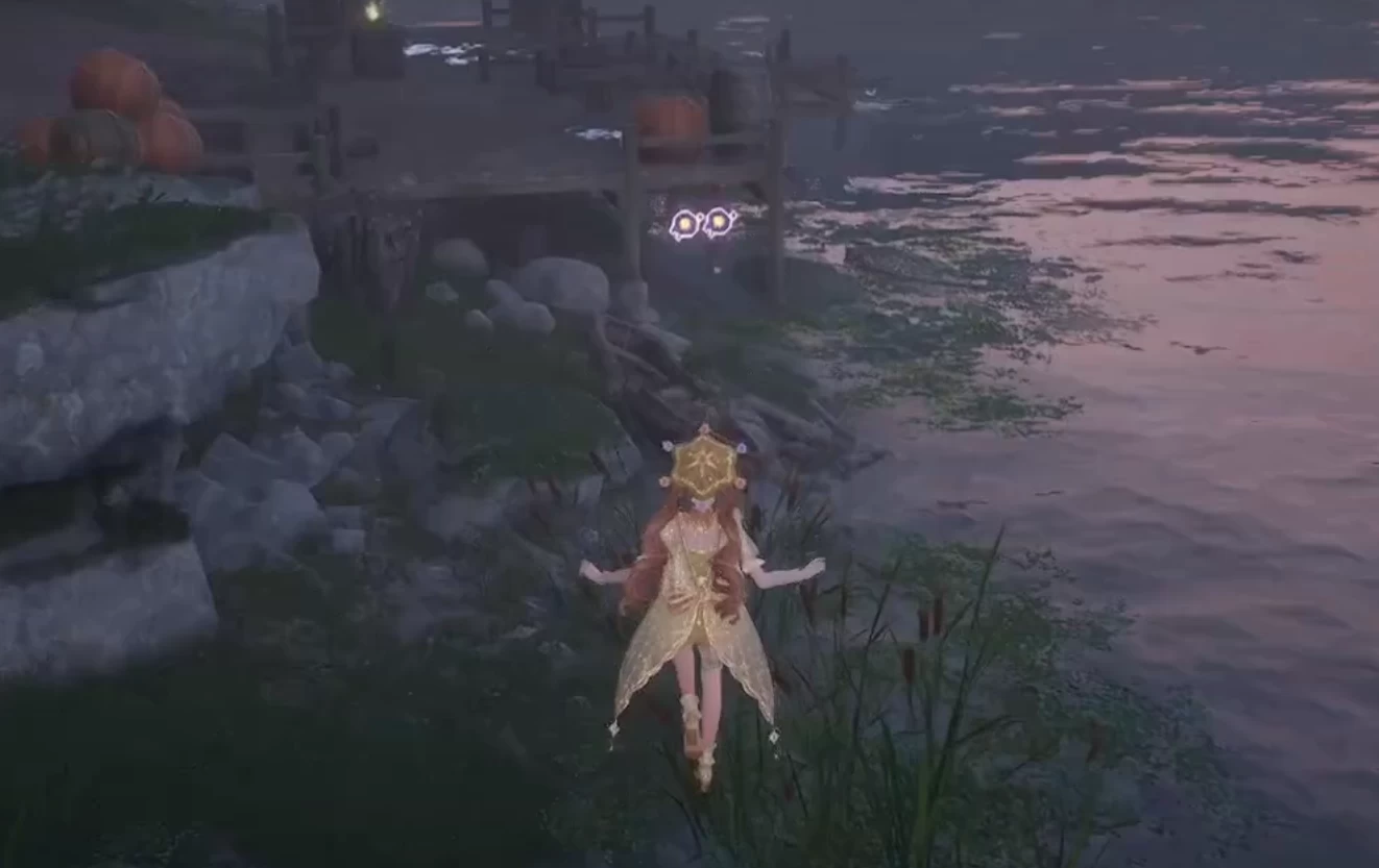 Первые две Dew of Inspiration на локации «Windrider Mill» в Infinity Nikki находим рядом с телепортом «Windrider Mill Entrance» — их нужно сбить с оконного проёма. После этого бежим по дороге к сломанному мосту, перепрыгиваем дыру и бежим дальше. Справа от дороги рядом с тыквами спрятаны ещё две Dew.