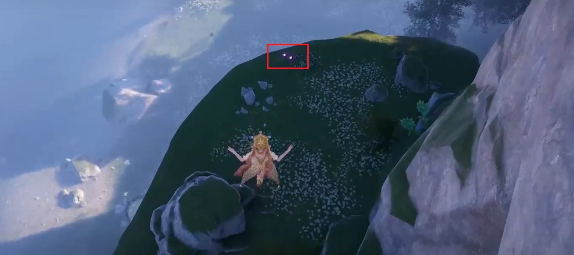 После этого сразу повернитесь и найдите небольшую впадину, где спрятаны ещё Dew.