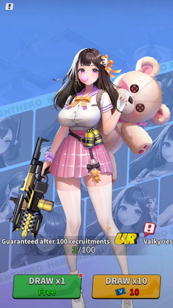 Второй способ повысить силу своего аккаунта это призывать новых валькирий. После 100 гача-круток вы гарантированно получите UR-персонажа. Также не забывайте повышать и возвышать своих валькирий, плюс прокачивать их скиллы и экипировку.