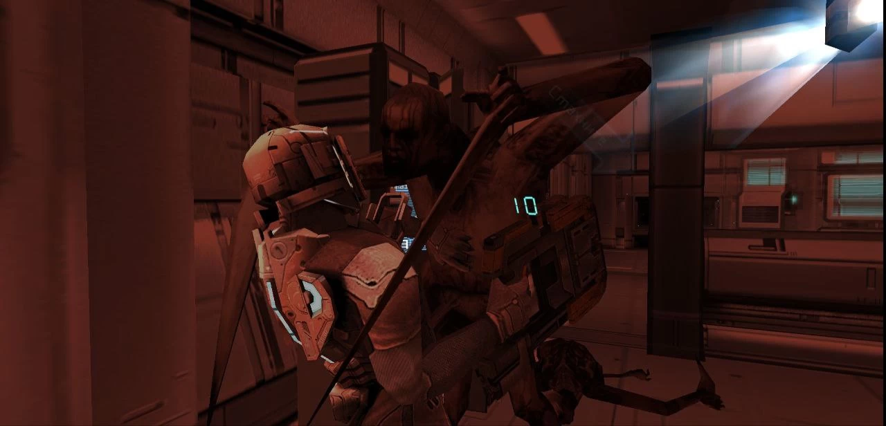 В Dead Space Mobile надо тапать по предметам, чтобы подбирать предметы, активировать двери и так далее. Только зачастую игра считает, что я хочу прицелиться во врага и потратить драгоценные патроны, вместо того, чтобы поднять в воздух тяжёлый ящик, блокирующий путь. С этим игрок будет часто сталкиваться.