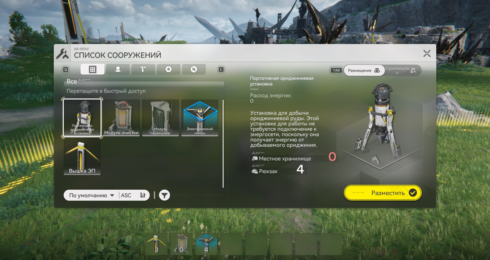 Чтобы поставить вышку, нажмите клавишу B и откройте инвентарь. В нём найдите вышку ЭП и нажмите кнопку «Разместить».