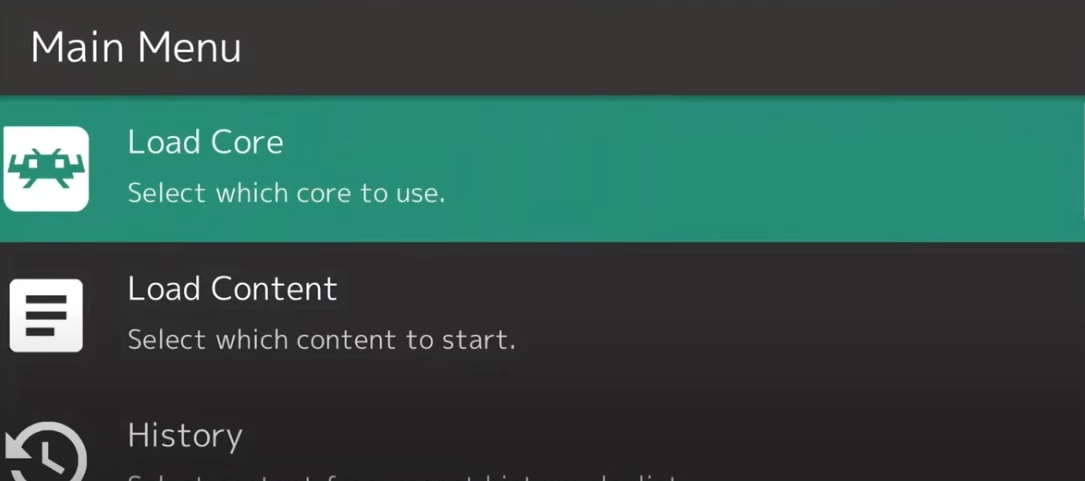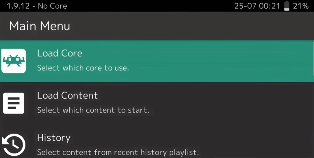 Теперь нужно загрузить игры в эмулятор. Для этого откройте RetroArch и нажмите на кнопку Load Content. Если всё прошло успешно, вы увидите список с разными играми — нажмите на любую из них и она мгновенно запустится.