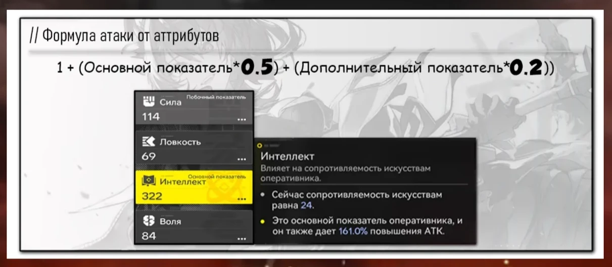 Бонус к атаке персонажи Endfield получают из своих основных атрибутов. Например, это может быть не только сила или ловкость, но и интеллект или воля. Например, оперативник-интеллектуал получит бонус «2 к 1» к АТК, а побочный показатель «сила» даст бонус «5 к 1».