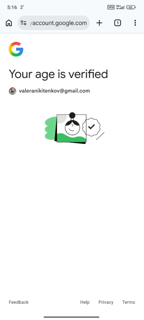 Если всё хорошо, то увидите надпись «Your age is verified».