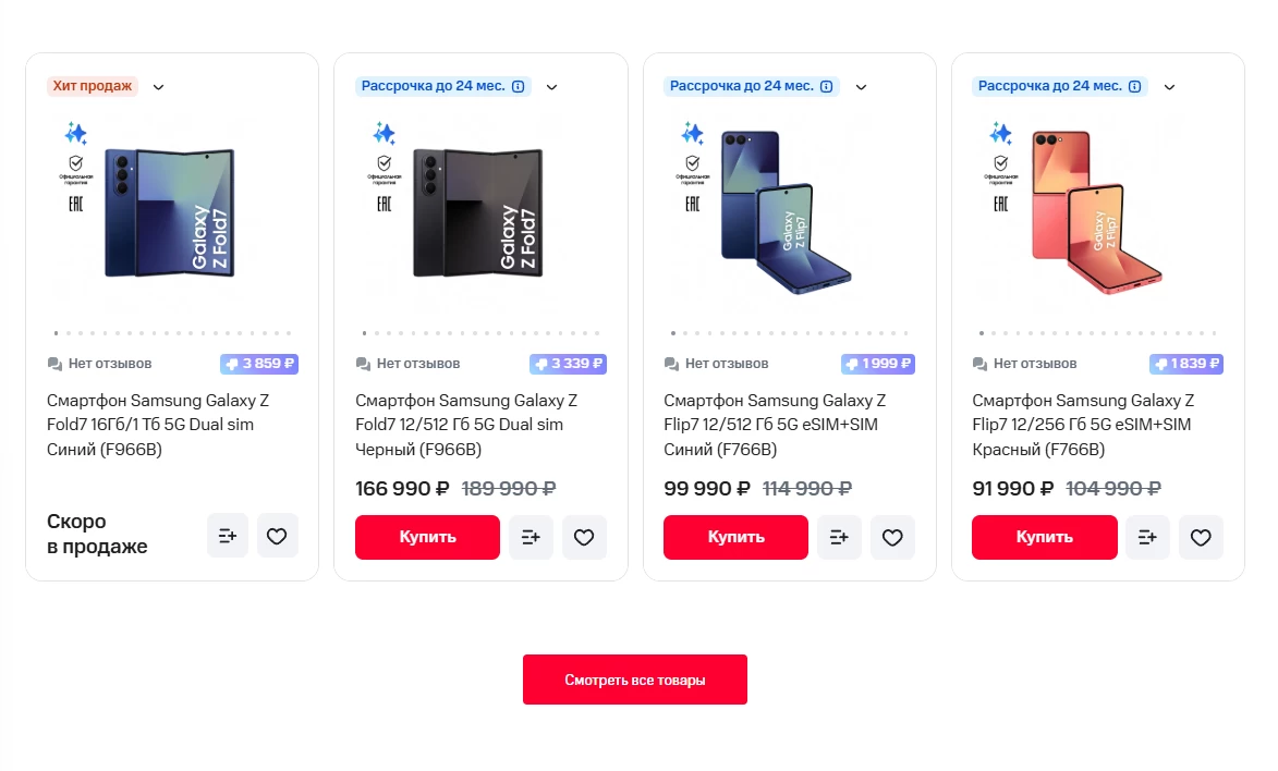 Помимо того, что МТС привёз смартфоны в Россию, компания также предлагает свою гарантию и рассрочку 0-0-24 без переплат и дополнительных услуг. Больше удивляет цена по сравнению с Западом: в США за Fold7 с 12+256 ГБ просят $1999 или 156 101 рубль, тогда как у МТС цена выше на 10 000 рублей.