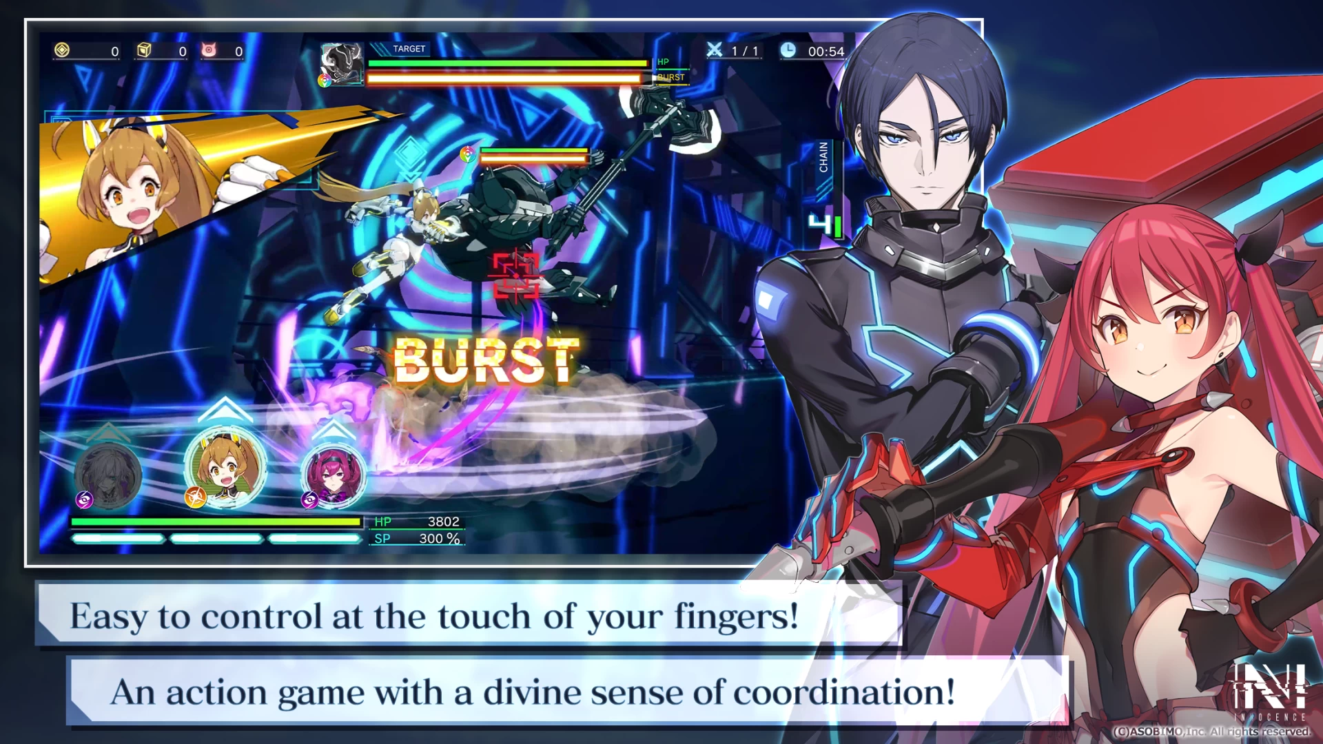 В N-INNOCENCE акцент делается на сюжет, который раскрывается через текстовые диалоги и видеовставки уровня телевизионных аниме. Игра предлагает смесь футуризма и средневековья, также в ней используется система «камень, ножницы, бумага» — каждый персонаж разбит на уровень редкости и стихию. Это поможет противостоять разным типам врагов.