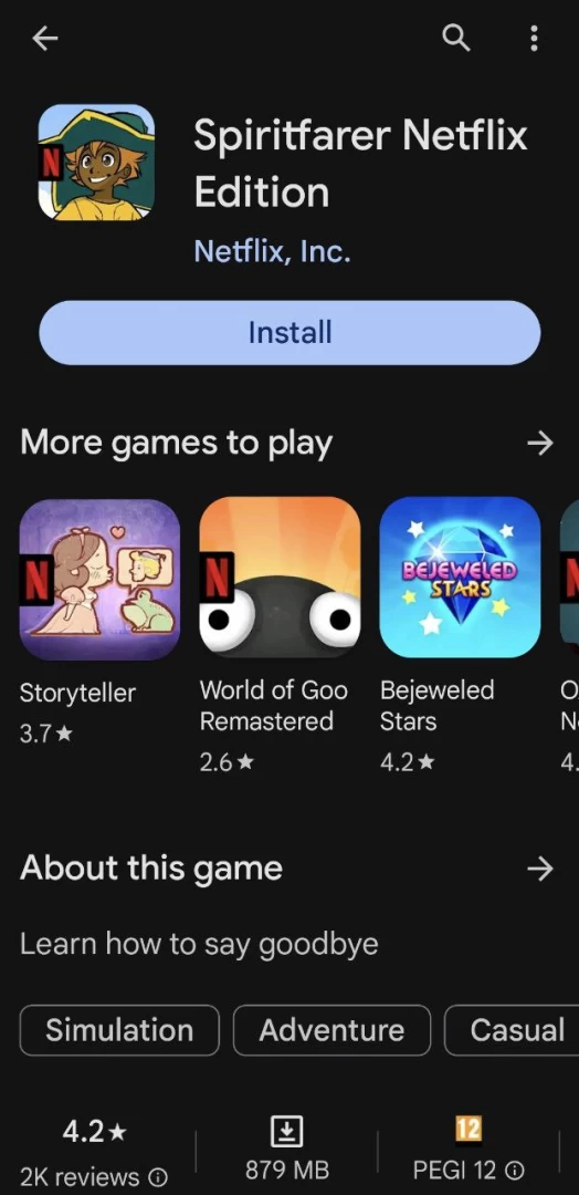 Далее в Google Play или App Store нужно найти игры от издателя Netflix. Одна из них это Spiritfarer.