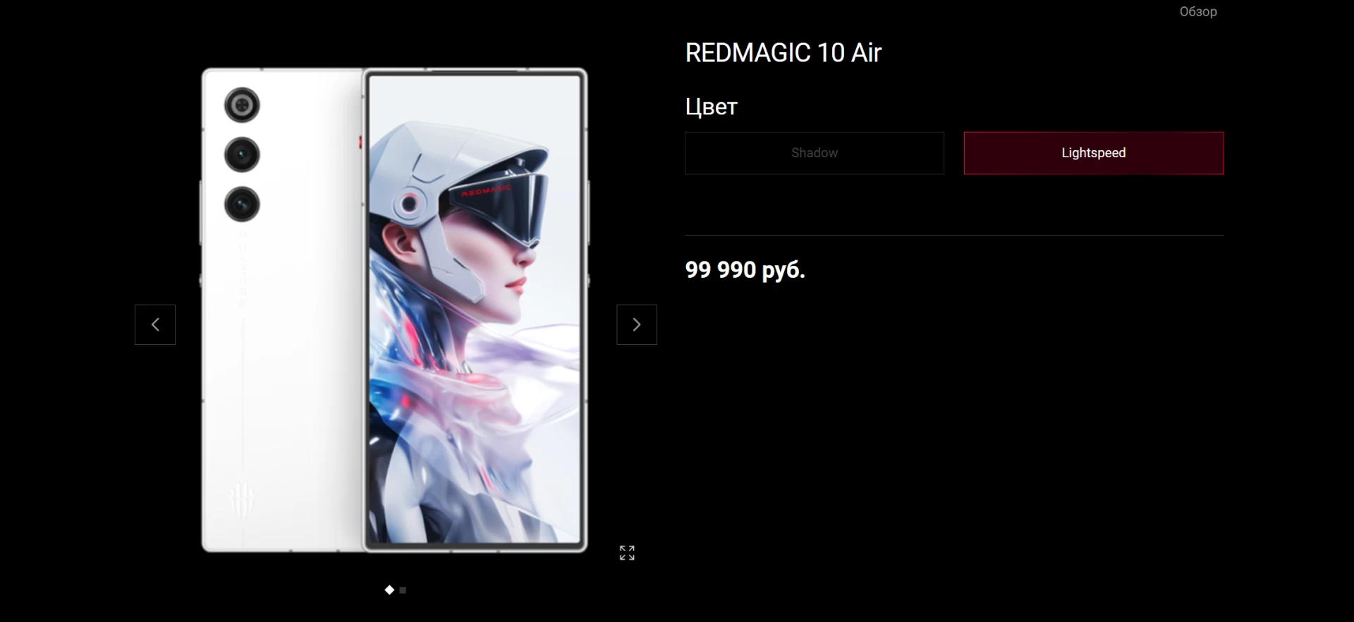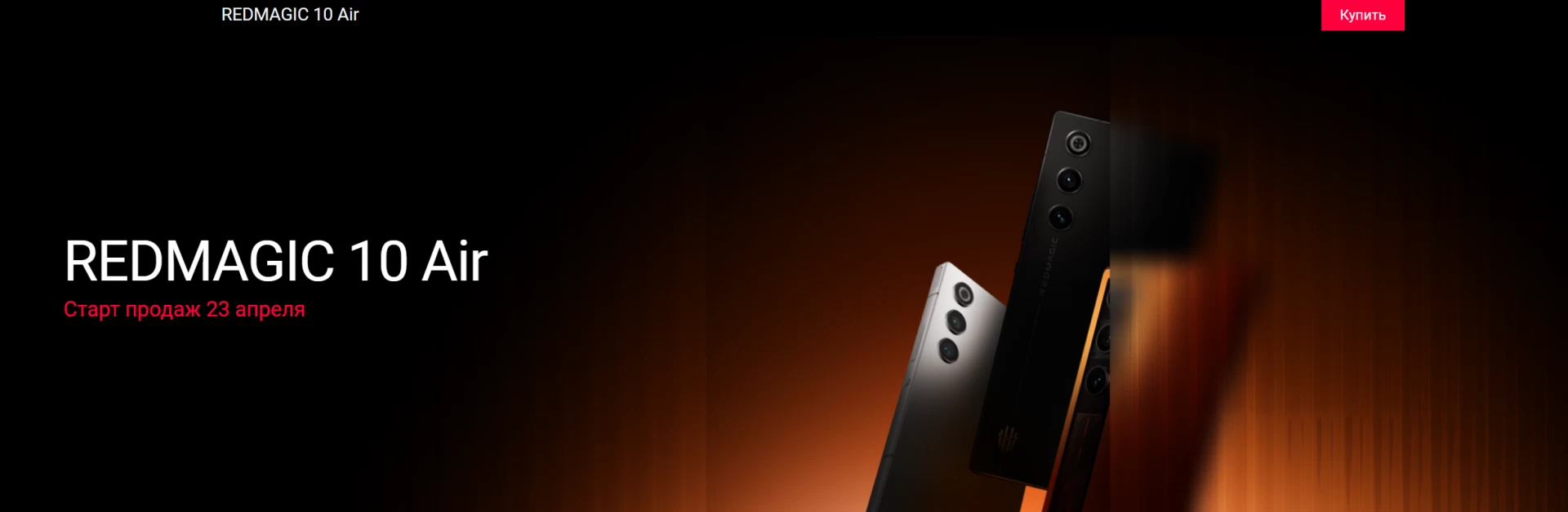 Для РФ ситуация немного иная как в плане цены, так и даты. На сайте red-magic.ru указано, что старт продаж RedMagic 10 Air запланирован на сегодня, 23 апреля. Цена за смартфон составит 99 990 рублей или €1063 по курсу ЦБ РФ.