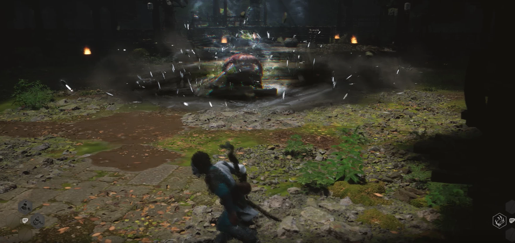 Вот как раз тот самый момент, когда Царь превращается в пыль и летает по локации. Готовьтесь, что в такой форме он сделает 2 быстрых полёта, а потом немного покружит по краю арены, прежде чем атаковать снова.