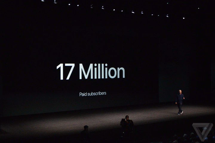 20:06На сцене появился Тим Кук и речь пошла об Apple Music , нам приводят некоторые данные , что уже сейчас подписчиков более 17 млн.
