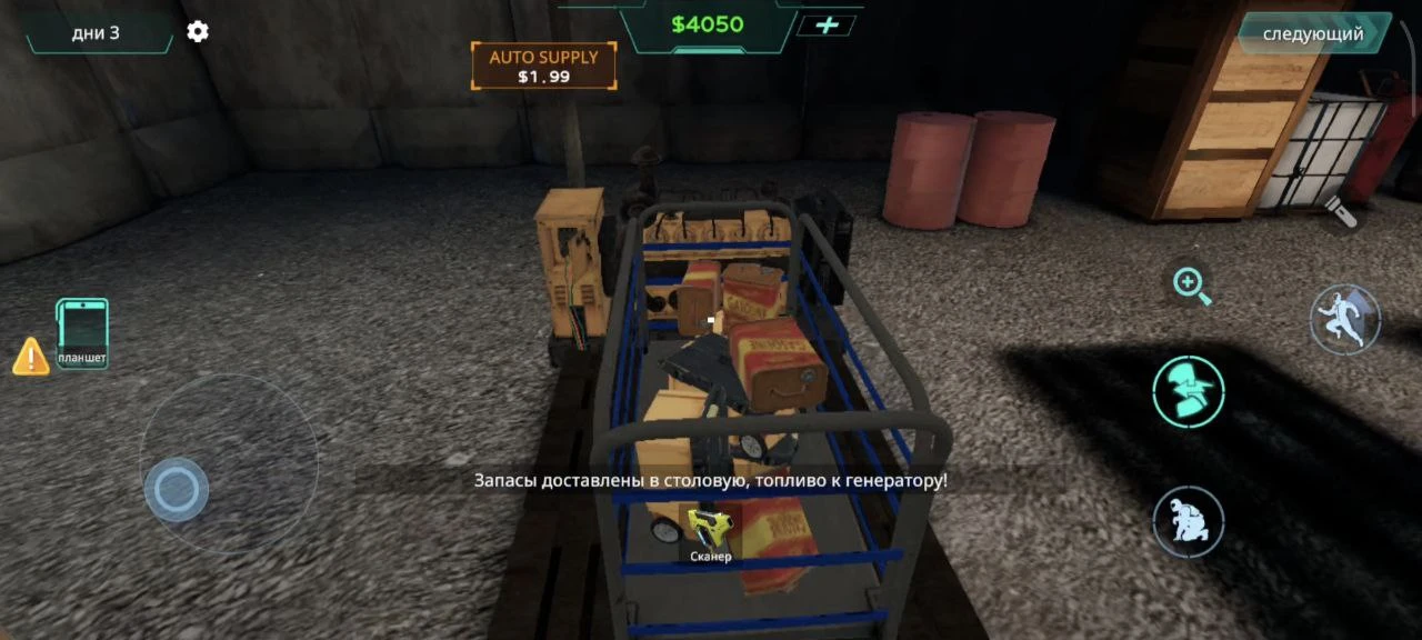Особенно Quarantine Check Zone хороша без рекламы и внутриигровых покупок — всё это есть во взломанной версии. Например, в F2P-версии нужно следить за уровнем топлива и еды, пополняя его и распределяя по разным углам зоны. С покупкой за $1,99 весь этот процесс можно автоматизировать.