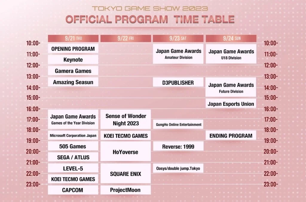 Расписание трансляции Tokyo Game Show 2023