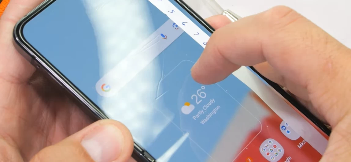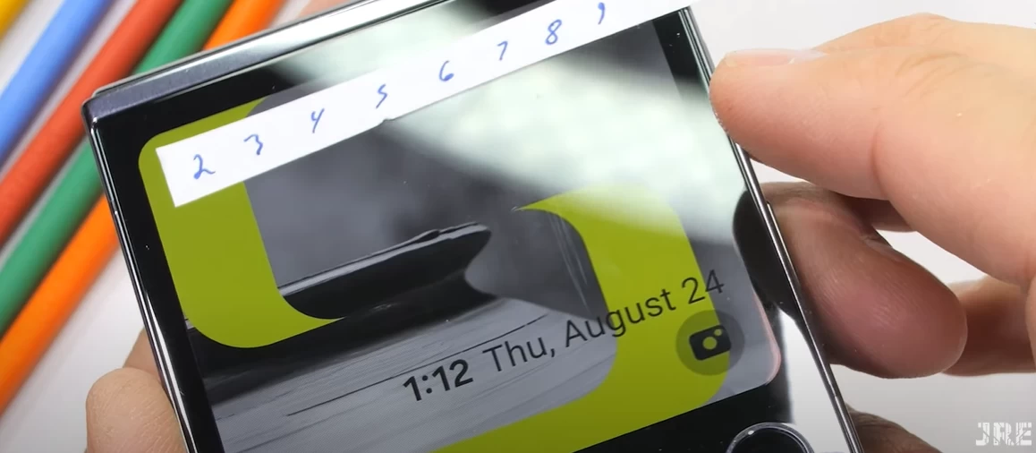 Samsung Galaxy Z Flip5, как и другие смартфоны-раскладушки, выглядит очень хрупким. Поэтому Ютубер JerryRigEverything провёл краш-тест. Сначала он поцарапал селфи-экран. В итоге на нём были видны маркие линии, никаких сильных повреждений.